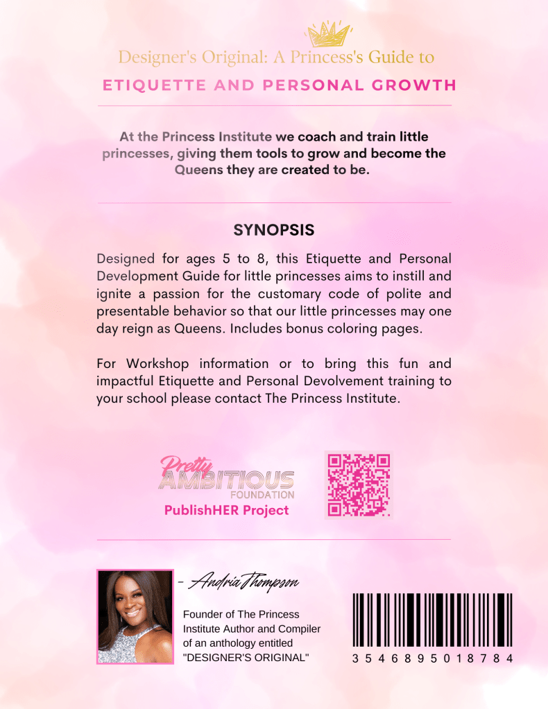 Under our PublishHer Project, Andria recently launched the start of her new series of the Princess’s Guide to Etiquette & Personal Growth for Early Readers.
